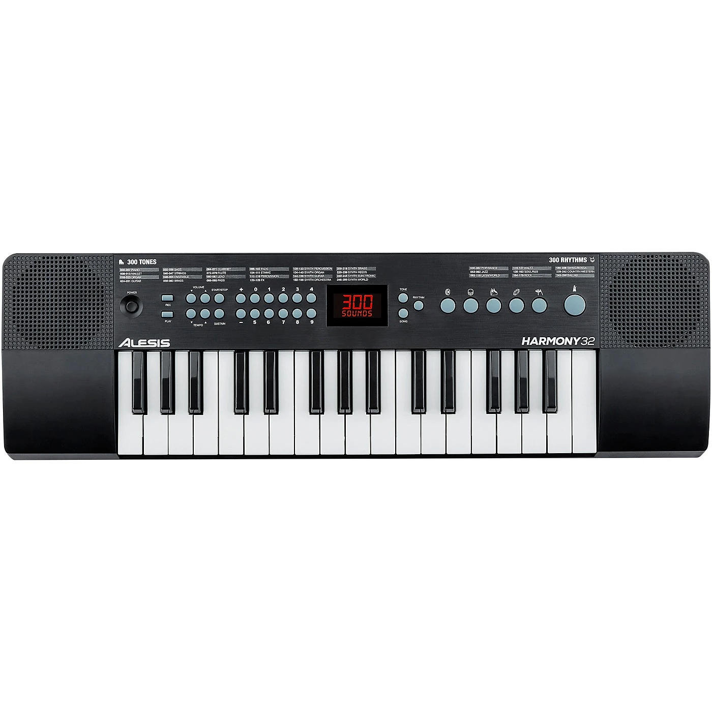 Built to take anywhere, the Alesis Harmony 32 portable keyboard will be your new favorite musical travel companion. With optional battery power, it’s piano playing unplugged. Practice outside or take it to a friend’s house. You can even brush up on your skills during a long road trip (if you’re not the one driving).Small Size That Packs a PunchDon’t let the Harmony 32’s small size fool you—there are 300 high-quality tones packed into this pint-sized piano. Explore the assortment of traditional piano and orchestral instruments, as well as guitars, drums and sound effects. The built-in speakers project every note clearly, whether powering a home performance or turned down for quiet practice. Need to get extra quiet? Connect your headphones to automatically mute the speakers.Valuable Learning Features Built-InThe Alesis Harmony 32 includes 40 demo songs that are fun and easy to play along with for beginners. For the more adventurous, Accompaniment Mode features 300 built-in rhythms to tickle the ivories over. Play Piano Anywhere, AnytimeThe Harmony 32 can be powered via USB or with 4 “AA” batteries (not included). Because it can be battery-powered, the Harmony 32 can go anywhere with you.3 Months of Skoove Premium IncludedSkoove is the easiest way to learn piano, with in-depth online piano courses that adapt to you and give you feedback. Develop your repertoire on your own time, at your own pace with a curated catalog filled with everything from current chart hits to classical music. Need a little help? Skoove’s experienced team of musicians is on hand with one-on-one support to answer questions. Exclusive lessons are added every month so you can keep expanding your repertoire and up your piano game with new music theory tips and tricks.2 Months of TakeLessons | Live IncludedThe Alesis Harmony 32 includes two months of free live video lessons from TakeLessons, America’s largest lessons company. You’ll learn faster than ever with live classes from real, expert teachers. Raise your hand, ask questions, interact with other class members, and have fun. Take as many classes as you want. There are hundreds of classes each month to pick from.Over 60 Free Interactive Lessons from MelodicsMelodics is the best way to build your skills and confidence with your portable keyboard. Download Melodics to your desktop or tablet for practice that’s fun, relevant and effective. The huge lesson variety and a learning structure puts you in charge. You’ll learn with instant feedback, playing great sounding music from modern genres.