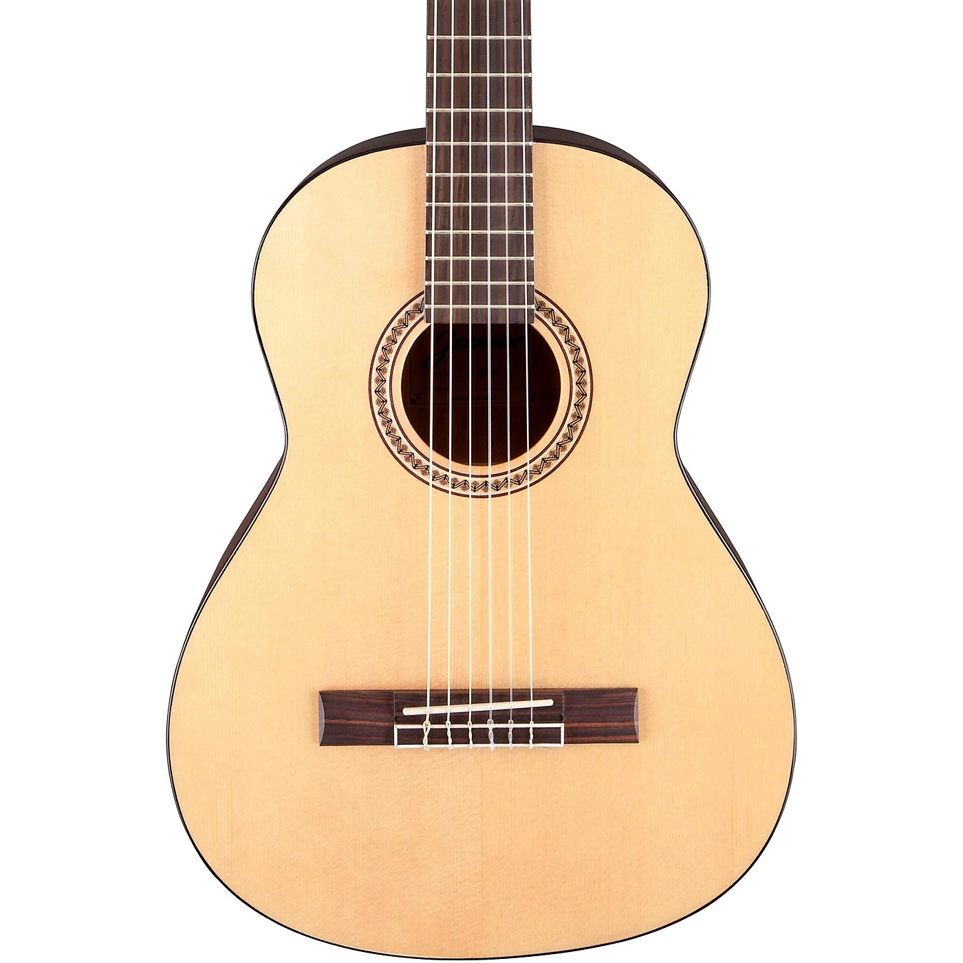 The Jasmine JC-23 is a 3/4-size classical guitar that offers great nylon-string sound in a package that’s just the right size for developing players (especially younger ones or people with smaller fingers) or anyone looking for a great-sounding, easy-playing guitar. The JC-23 features a select spruce top with Jasmine’s Advanced Classical Bracing, and sapele back and sides for superior tone. The slim satin-finished neck and short 23-3/8″ scale length provide smooth, comfortable feel and excellent playability that will have you playing for hours.Other great features include a rosewood fingerboard and bridge, a beautiful mosaic rosette and a gloss-finished top.Case sold separately.