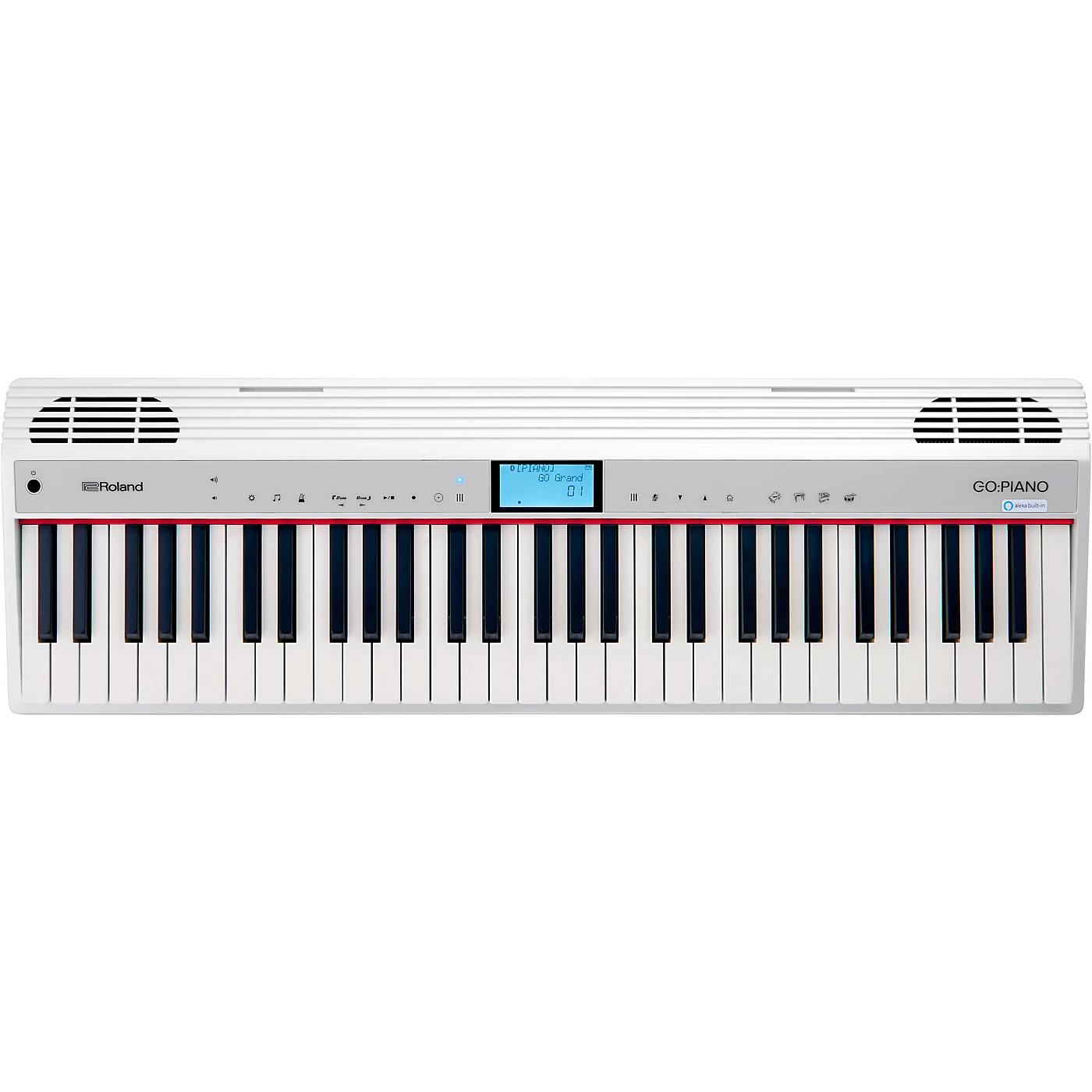 Roland GO:PIANO with Alexa Built-In introduces a smart, new approach to learning and playing the piano, making the experience easier and more engaging than ever before. This fun, portable instrument can be played anywhere around your home, and sounds amazing thanks to Roland’s acclaimed piano sound engine. Better still, you can operate nearly every onboard control using just your voice. When playing GO:PIANO with Alexa, you never have to interrupt the musical flow with fussy button presses or diving into complicated menus. Want to turn record your performance, turn on the metronome or choose a different sound? Just ask Alexa. And when you want to play along with your favorite songs, just ask Alexa to queue them up from Amazon Music—requires a subscription to Prime Music or Amazon Music Unlimited.Smart Operation With Simple Voice CommandsGO:PIANO with Alexa Built-In does away with complicated panel operations. Using just your voice, you can instantly access any of the 40 onboard sounds, and you never have to take your hands off the keyboard. Many other settings can also be adjusted while staying in the flow, like turning the metronome on or off, changing up the beat and more.Play Along With Songs From Amazon MusicSince GO:PIANO with Alexa Built-In also works as an Alexa-enabled device, it allows you to listen and play along to songs from Amazon Music through the keyboard’s high-quality sound system. With a huge variety of songs available, you’ll never run out of daily musical inspiration. Save Recordings in the CloudWhen you’ve mastered a piece or composed a new idea, just ask Alexa to record your performance. You can then listen back and evaluate what you’ve done. It’s even possible to upload your recordings to free cloud storage, where they’re always accessible for playback when GO:PIANO with Alexa is connected via wi-fi. Quickly Improve Your Musical SkillsWith the combined technologies in GO:PIANO with Alexa Built-In, you can learn quicker than ever before. Alexa can take your through ear training or build your knowledge with music trivia. And by connecting your smartphone or tablet via Bluetooth, you can use Roland’s Piano Partner 2 app to learn music scores and boost your skills with fun exercises and musical games. Get Inspired with Roland’s Expressive Piano SoundsGreat tone makes you want to keep playing, and GO:PIANO with Alexa Built-In inspires with expressive sounds derived from Roland’s premium pianos. Each note responds to your touch like a fine acoustic grand, sparking your creativity and stimulating ongoing musical growth. Electric pianos, organs and many other sounds are also on board, allowing you to expand your musical experience with a world of different styles.